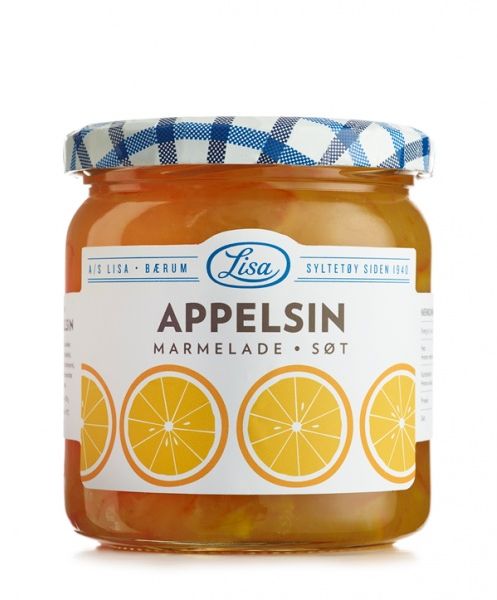 Laget av 40 % appelsin. I denne marmeladen bruker Lisa søte appelsiner, slik at marmeladen blir rundere i kantene enn den engelske typen. Lenger syd i Europa er dette en frokostklassiker.