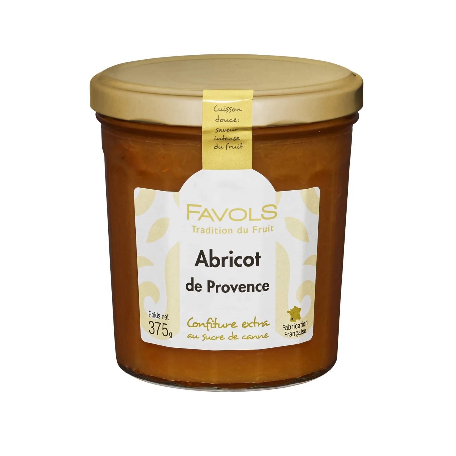 Her tar Favols deg med på en reise til aprikostrærne i Provence og lar deg smake på frukt som er kysset av solen. Det er bare å vri av lokket og smøre godsakene på en lun croissant. Franske aprikoser har en intens aroma med søt smak og fast tekstur. FAVOLS kjøper i hovedsak sine aprikoser fra et kooperativ bestående av økologiske produsenter i Occatine regione. All frukten kjøpes i sesongen som varer fra midten av juni til midten av august. Den ferske frukten foredles kun når frukten er i sesong. På denne måten bevares den smaksrike ferske fruktens kvaliteter når den foredles. 375 g