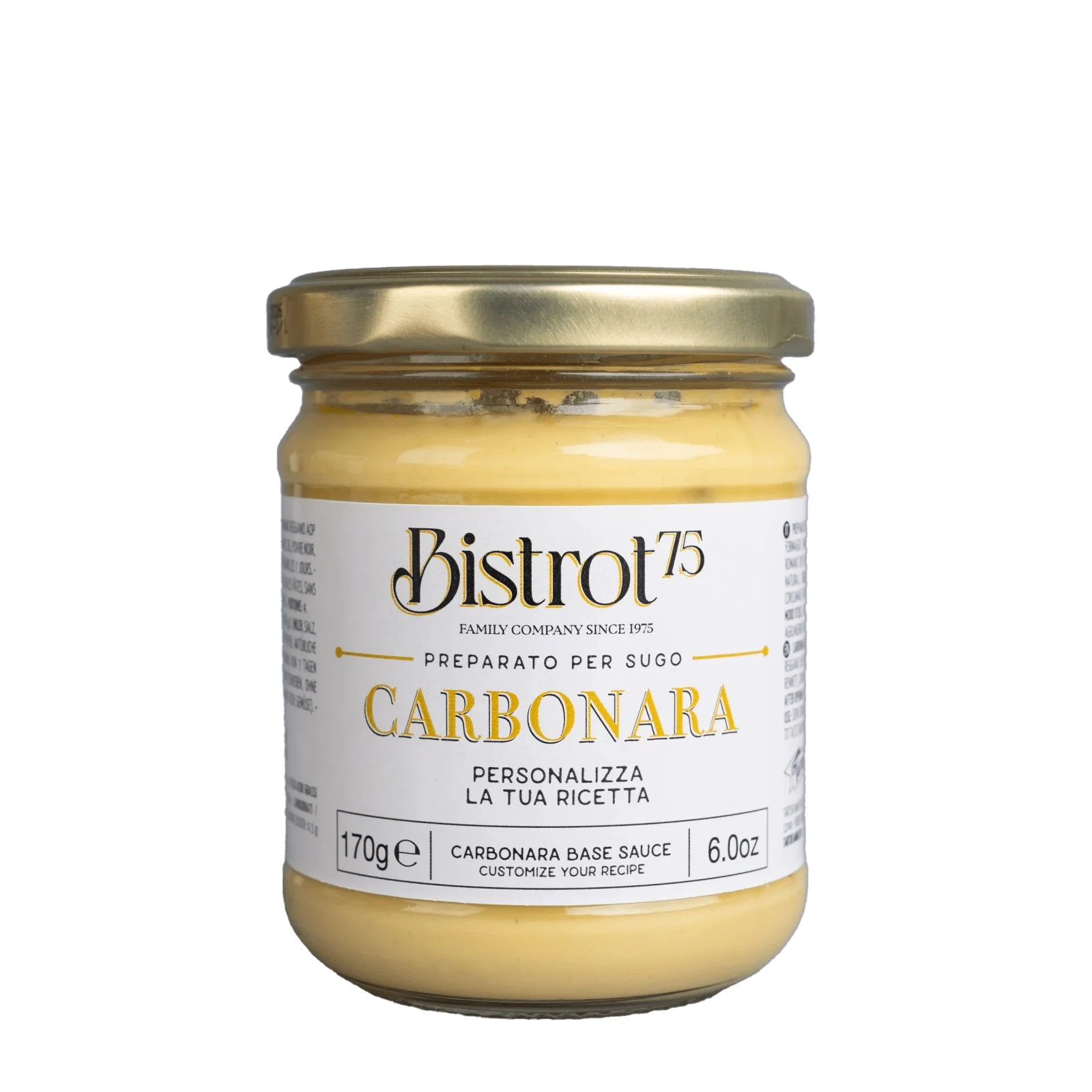 100% autentisk saus der det eneste du trenger i tillegg er pasta og guanciale eller pancetta, eventuelt litt ekstra ost. – Rett og slett et «sim, sala bim produkt» selvfølgelig helt uten melk eller fløte.