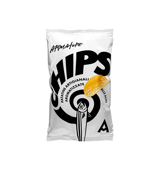 Armatore is known for its craftsmanship, and these chips are no exception. A chip built on craftsmanship and 100% natural anchovies from its own production. Chips alle Alici have a deep, salty and umami-rich taste, and are perfect as a snack or side dish. Try it for an aperitif, as a topping, or alongside a classic caprese.