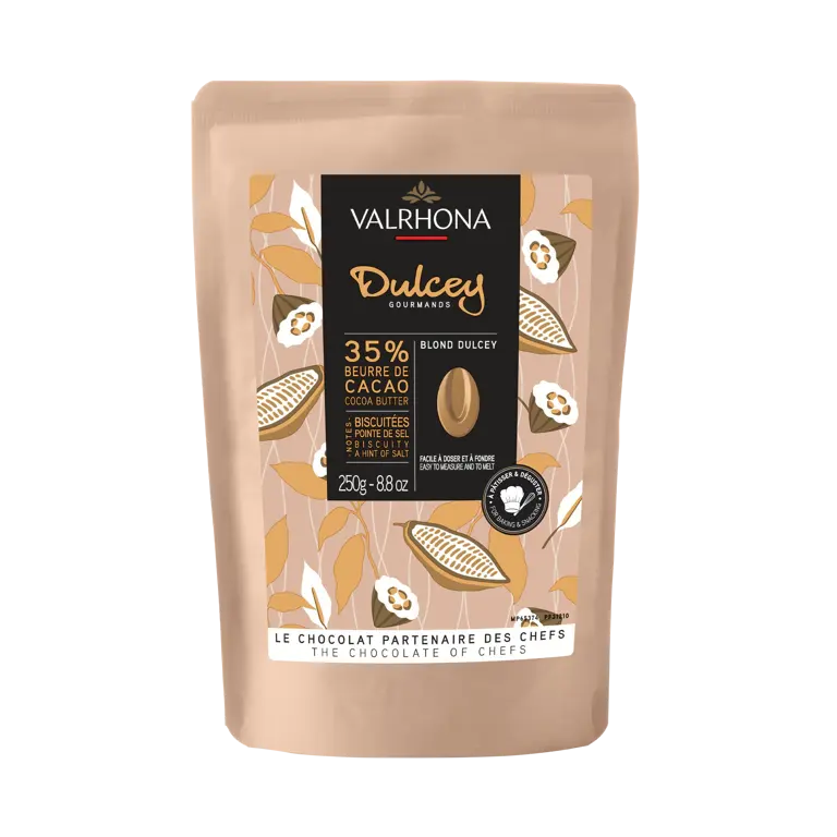Denne sjokoladen er favoritten for mange når det kommer til baking og generell bruk av sjokolade. Dulcey er en hvit sjokolade, hvor melkesukkeret er karamellisert, med et kakaoinnhold på 32%.