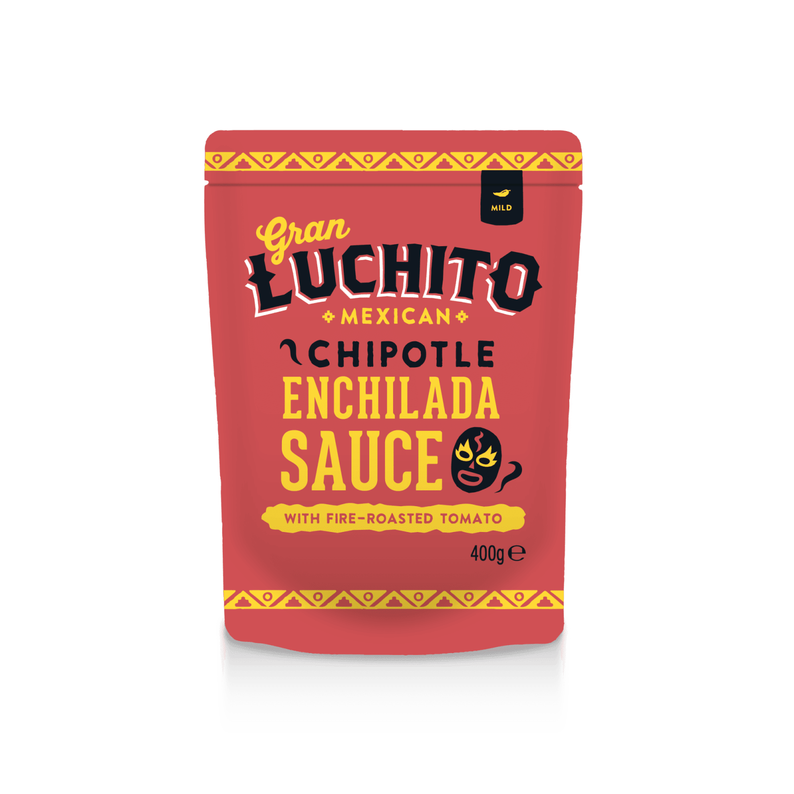 Laget i Mexico etter en tradisjonell oppskrift og de beste ferske ingrediensene. Det blandes chipotle chili med bålstekt rød tomat, løk og hvitløk for en deilig rød enchiladasaus.