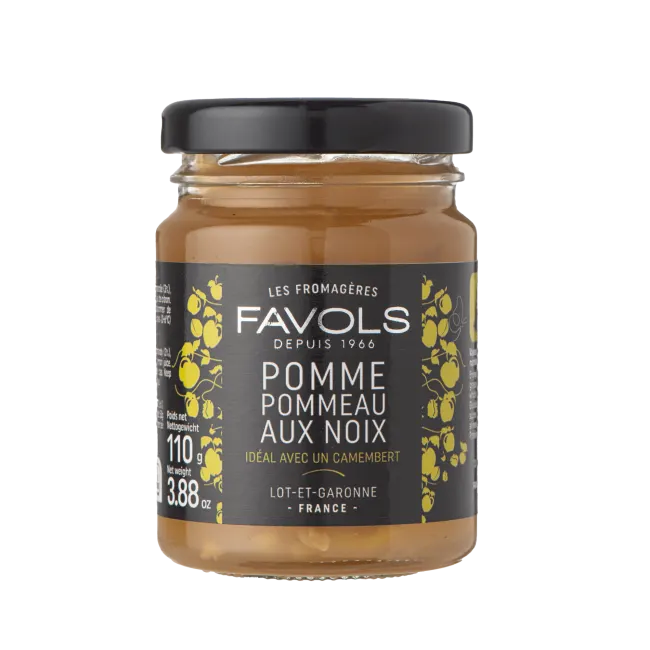 Dette syltetøyet er laget på epler fra Normandie. Kombinasjonen av søte og bitre epler gir et friskt og godt syltetøy, som bare blir enda bedre når det blandes med pommeau og valnøtter. 110 g
