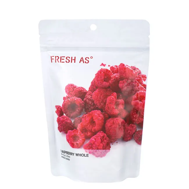 Sprø, frysetørkede hele bringebær. Tips: Spises rett fra posen, dypp dem i smeltet sjokolade eller knus dem lett og dryss over yoghurt og müsli, perfekt til kaker og desserter også