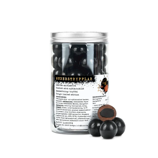 Hederstryfflene er et resultat av en unik kombinasjon av lakrisrotens søt-salte karakter og trøffelens rike, jordnære aroma. Hver trøffel er håndlaget og produseres i begrenset opplag for å sikre høy kvalitet. Den eksklusive smaken gjør Hederstryfflene til en perfekt gave eller en spesiell opplevelse for egen del.