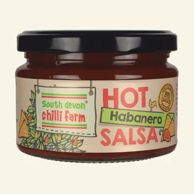 South Devon Chili Farm sin Habanero-salsa, perfekt for dypping med nachos eller potet-chips. Litt sterkere enn en gjennomsnittlig salsa, men fortsatt veldig rund og god! Passer også utmerket i wraps eller som tilbehør til en burger.