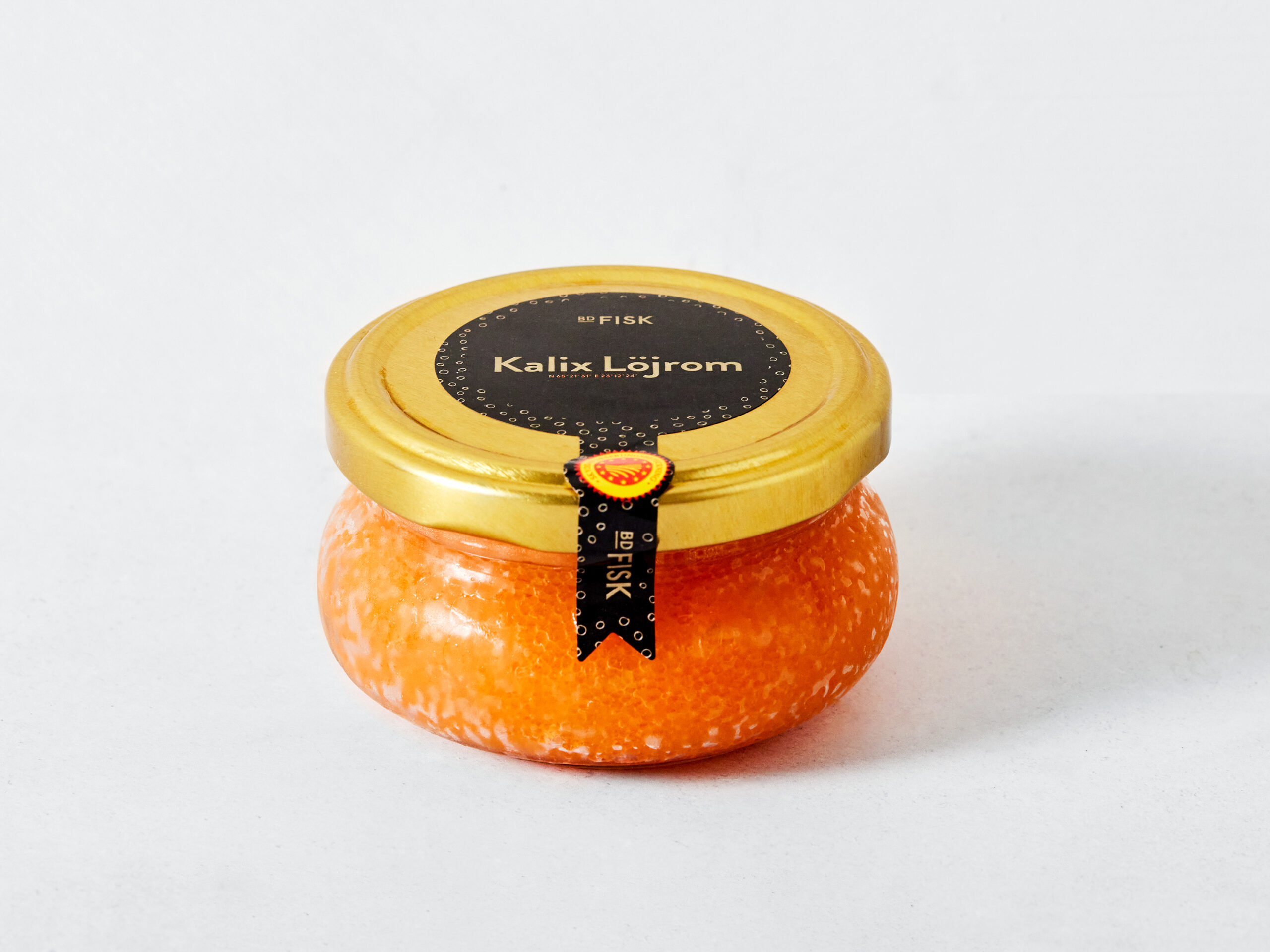 Delikatesse fra øverste hylle fra söta bror! Det er kun löjrom som lages i Kalix i Norrbotten i Sverige som kan kalles löjrom, etter at produktet ble geografisk opprinnelsesbeskyttet i 2010. Svært delikat på smak, med rene toner av salt og mineralitet. Egner seg ypperlig som forrett, og serveres ofte på blinis eller på salt chips sammen med en god rømme, rødløk og dill. Eller prøv deg på den praktfulle pastavarianten fra Arakataka, med beurre blanc og rause mengder löjrom.