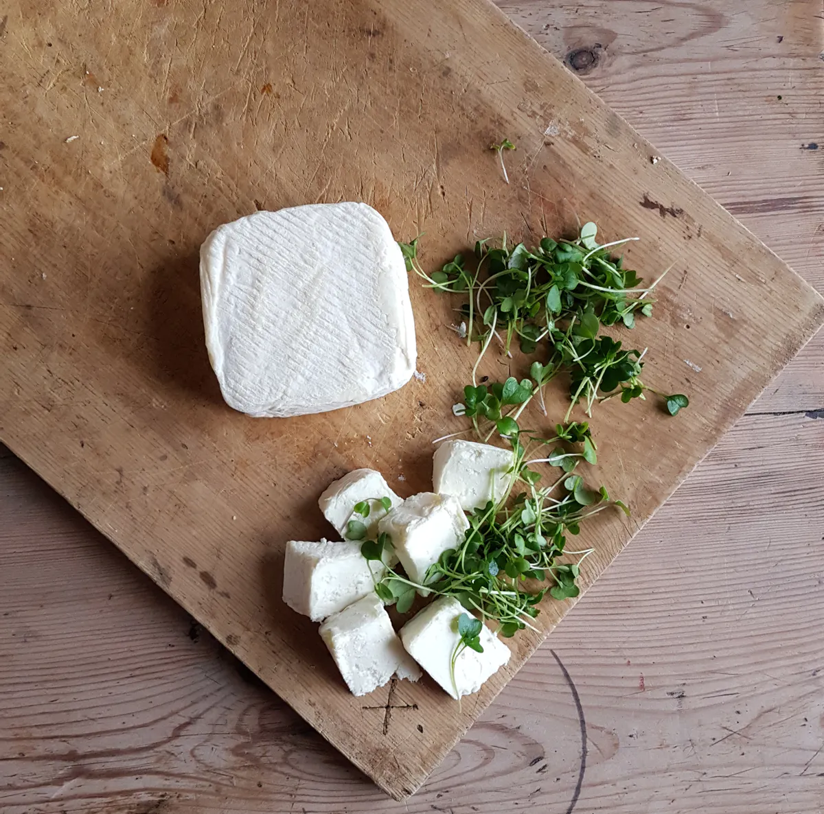 Rå geitemjølk, animalsk løype, kulturer og salt