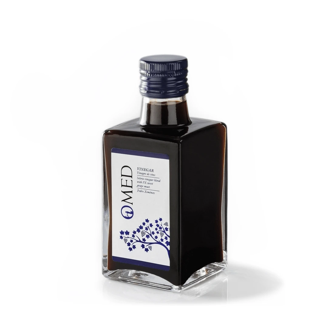 Pedro Ximénez som konsentrerte modne rosiner. Eddiken lagres i amerikanske eikefat får vi en perfekt balansert eddik med en lett sødme. Utrolig god på vaniljeis eller istedenfor balsamico eddik for en morsom vri!
