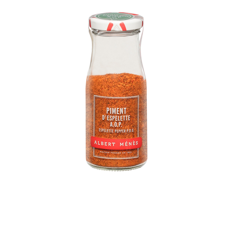 Ett fantastisk krydder med kultstatus blant mesterkokkene og det eneste franske krydderet med AOP-erklæring. Det produseres i den franske delen av Baskerland, rundt den lille landsbyen Espelette. De høstes på sensommeren, og i september henges de over balkonger og husvegger i hele byen, hvor de skånsomt tørker ut i solen. Når de er ferdig tørket, blir chilien brent i en ovn, og deretter knust til pulver. Ett utrolig mildt og delikat chili/paprika krydder, spesielt egnet til sjømat.