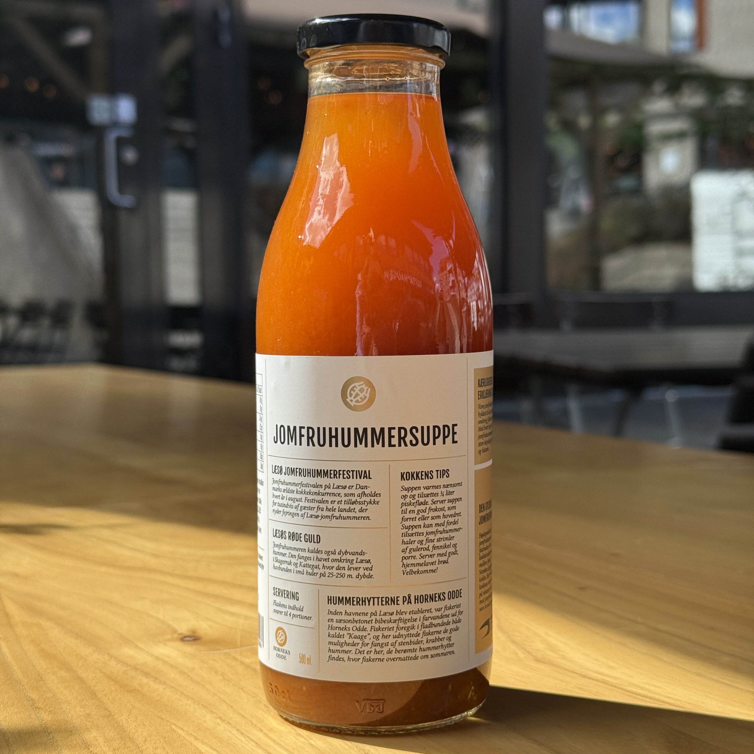 Sjøkrepsen, jomfruhummeren og også kjent som dypvannshummer, fanges i Kattegat og Nordsjøen, hvor den lever ved havbunnen på 25–250 meters dyp. Server suppen med kokte sjøkrepshalerhaler, kamskjell eller reker, gjerne sammen med fennikel, gulrot og purre. Til hovedrett kan du tilsette litt torsk de siste 5 minuttene av koketiden. Serveres med godt brød og smør. Vel bekomme!