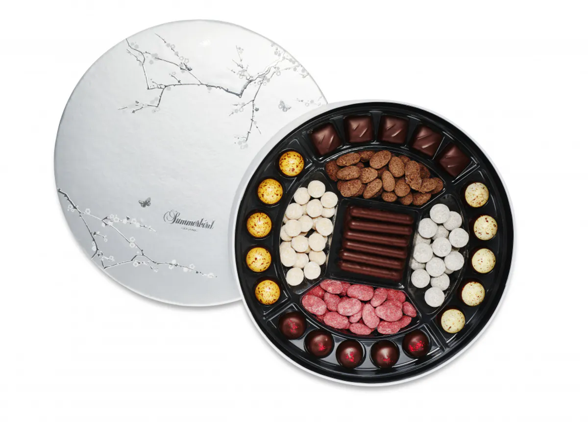En nydelig gaveeske med diverse julegodis og økologisk sjokolade fra Summerbird. Esken inneholder økologiske mandler dekket i vanilje og kirsebær, sjokoladetrøfler med mint, mørk sjokolade med appelsin, ambersjokolade og mye mer. Det er ni forskjellige varianter fra Summerbird som garanterer en smaksopplevelse.