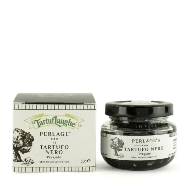 The TRUFFLE PERLAGE® is a very innovative product invented by Tartulanghe.The Truffle Caviar is made from the black winter truffle juice, which is obtained directly from the fresh truffle during its cooking. This tasty juice is then reduced in small pearls through a verysophisticated technique called “sferification”. We obtain small pearls with the taste of the truffle and the same colour and texture of the caviar!